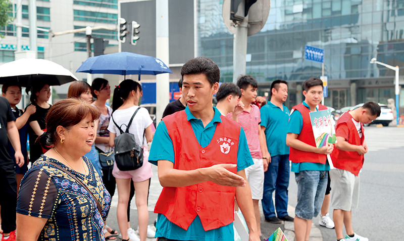 2018年夏季,快遞小哥柴閃閃在上?;疖囌灸蠌V場恒豐路口做文明出行的指路志愿者