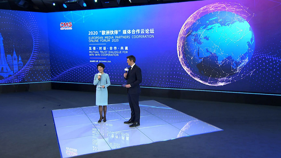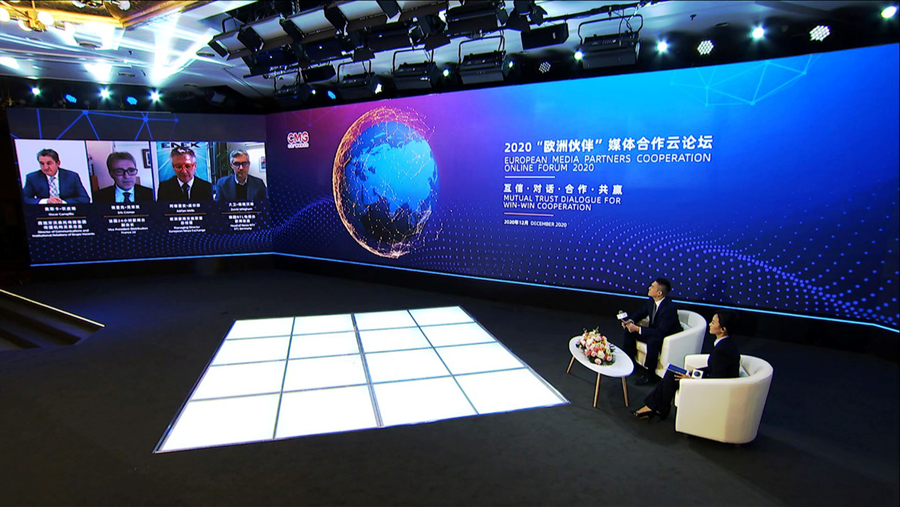 12月10日,中央廣播電視總臺(tái)以視頻連線的方式舉辦2020“歐洲伙伴”媒體合作云論壇。中宣部副部長、中央廣播電視總臺(tái)臺(tái)長、總編輯慎海雄出席并發(fā)表致辭,強(qiáng)調(diào)堅(jiān)持多邊主義,加強(qiáng)對(duì)話交流,構(gòu)建中歐媒體伙伴關(guān)系。中央廣播電視總臺(tái)相關(guān)代表與來自歐洲地區(qū)16個(gè)國家25家媒體機(jī)構(gòu)的28名與會(huì)代表圍繞“互信·對(duì)話·合作·共贏”主題,相聚云端展開對(duì)話,共同發(fā)布《加強(qiáng)媒體合作聯(lián)合聲明》,積極推動(dòng)中歐媒體加強(qiáng)合作、同舟共濟(jì)、團(tuán)結(jié)抗疫,提振國際社會(huì)信心。