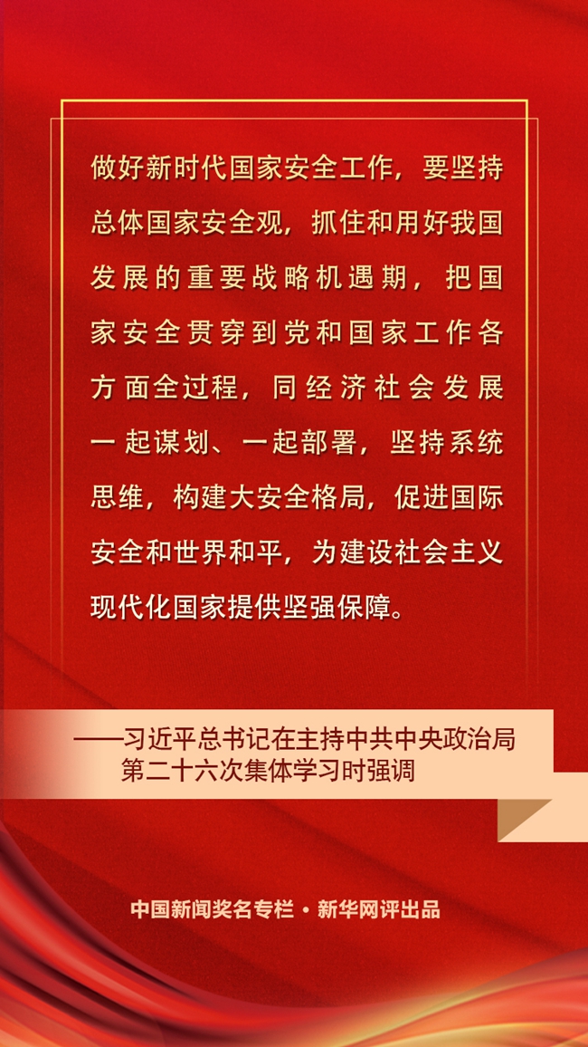 繼黨的十九屆五中全會(huì)提出把統(tǒng)籌發(fā)展和安全納入“十四五”時(shí)期我國(guó)經(jīng)濟(jì)社會(huì)發(fā)展的指導(dǎo)思想之后,切實(shí)做好國(guó)家安全工作又成為12月11日下午中共中央政治局第二十六次集體學(xué)習(xí)的內(nèi)容。習(xí)近平總書(shū)記在主持學(xué)習(xí)時(shí)強(qiáng)調(diào)了國(guó)家安全在黨和國(guó)家工作大局中的重要地位,并就貫徹總體國(guó)家安全觀提出明確要求。