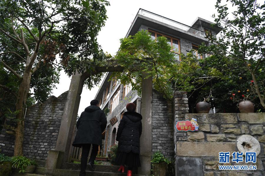 游客走進(jìn)重慶市萬州區(qū)大周鎮(zhèn)五土村一民宿(12月10日攝)。新華社記者 王全超 攝