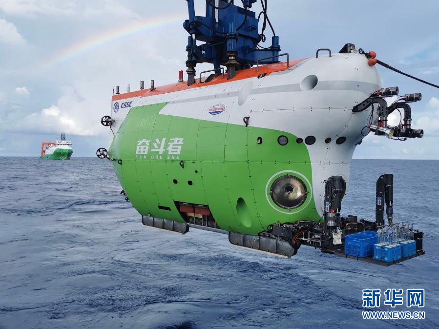 11月28日8時30分許,創(chuàng)造了10909米中國載人深潛新紀錄的“奮斗者”號,完成第二階段海試,勝利返航。這是“奮斗者”號(資料照片)。新華社發(fā)(中國船舶集團供圖)