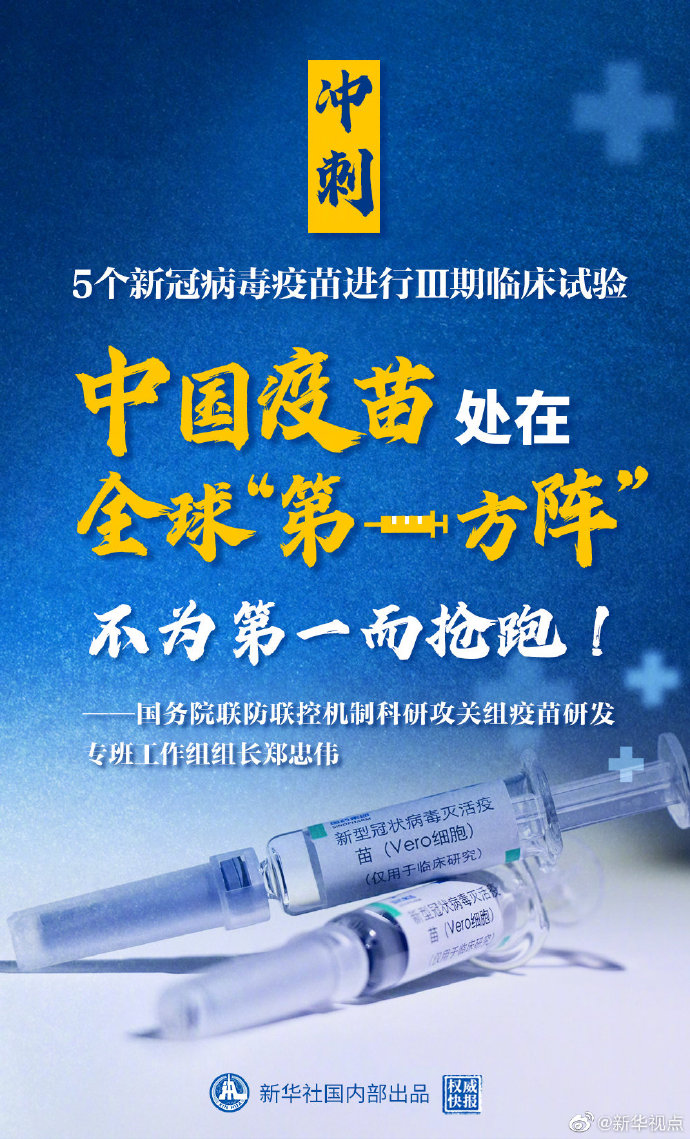 相關(guān)方面正在繼續(xù)科學(xué)嚴(yán)謹(jǐn)推進(jìn)疫苗Ⅲ期臨床試驗(yàn),嚴(yán)格按照法律法規(guī)和國際認(rèn)可的技術(shù)標(biāo)準(zhǔn)做好審評(píng)審批工作,確保疫苗安全有效,經(jīng)得起各方面檢驗(yàn),經(jīng)得起歷史檢驗(yàn)。