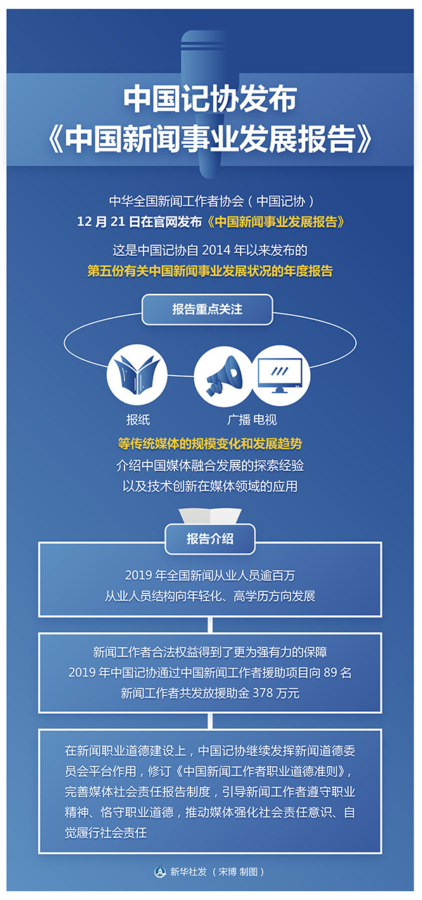 新華社北京12月21日電 中華全國新聞工作者協(xié)會(中國記協(xié))21日在官網(wǎng)發(fā)布《中國新聞事業(yè)發(fā)展報告》。這是中國記協(xié)自2014年以來發(fā)布的第五份有關(guān)中國新聞事業(yè)發(fā)展?fàn)顩r的年度報告。