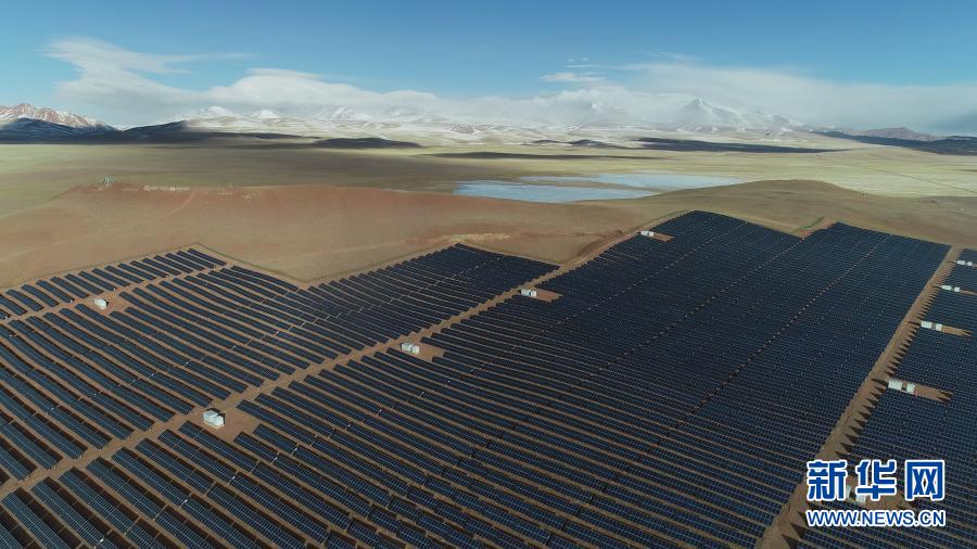 這是2019年1月31日在西藏那曲市雙湖縣拍攝的太陽能發(fā)電站(無人機(jī)照片)。新華社記者 普布扎西 攝
