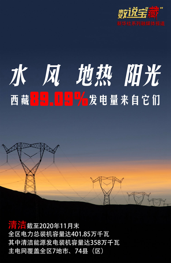 西藏自治區(qū)發(fā)展改革委的數(shù)據(jù)顯示,近年來西藏發(fā)電能力大幅增長(zhǎng),截至2020年11月末,全區(qū)電力總裝機(jī)容量達(dá)401.85萬千瓦,其中清潔能源板塊增長(zhǎng)迅速,同期水電、風(fēng)電、地?zé)嵋约疤柲芄夥l(fā)電裝機(jī)容量達(dá)358萬千瓦,清潔能源在發(fā)電裝機(jī)容量中的占比達(dá)89.09%。