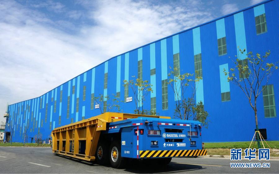 這是中國寶武寶鋼股份上海寶山基地的無人駕駛重載框架車及無人倉庫(資料照片)。新華社發(fā)(寶武集團(tuán)供圖)