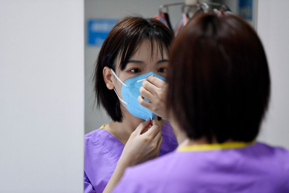 不同于剛到武漢時,防護服穿上身要半個多小時,輕車熟路的她如今10分鐘就能穿戴好。她還有個小妙招,將碘伏內(nèi)涂護目鏡,晾干后再佩戴會減少水霧的產(chǎn)生。