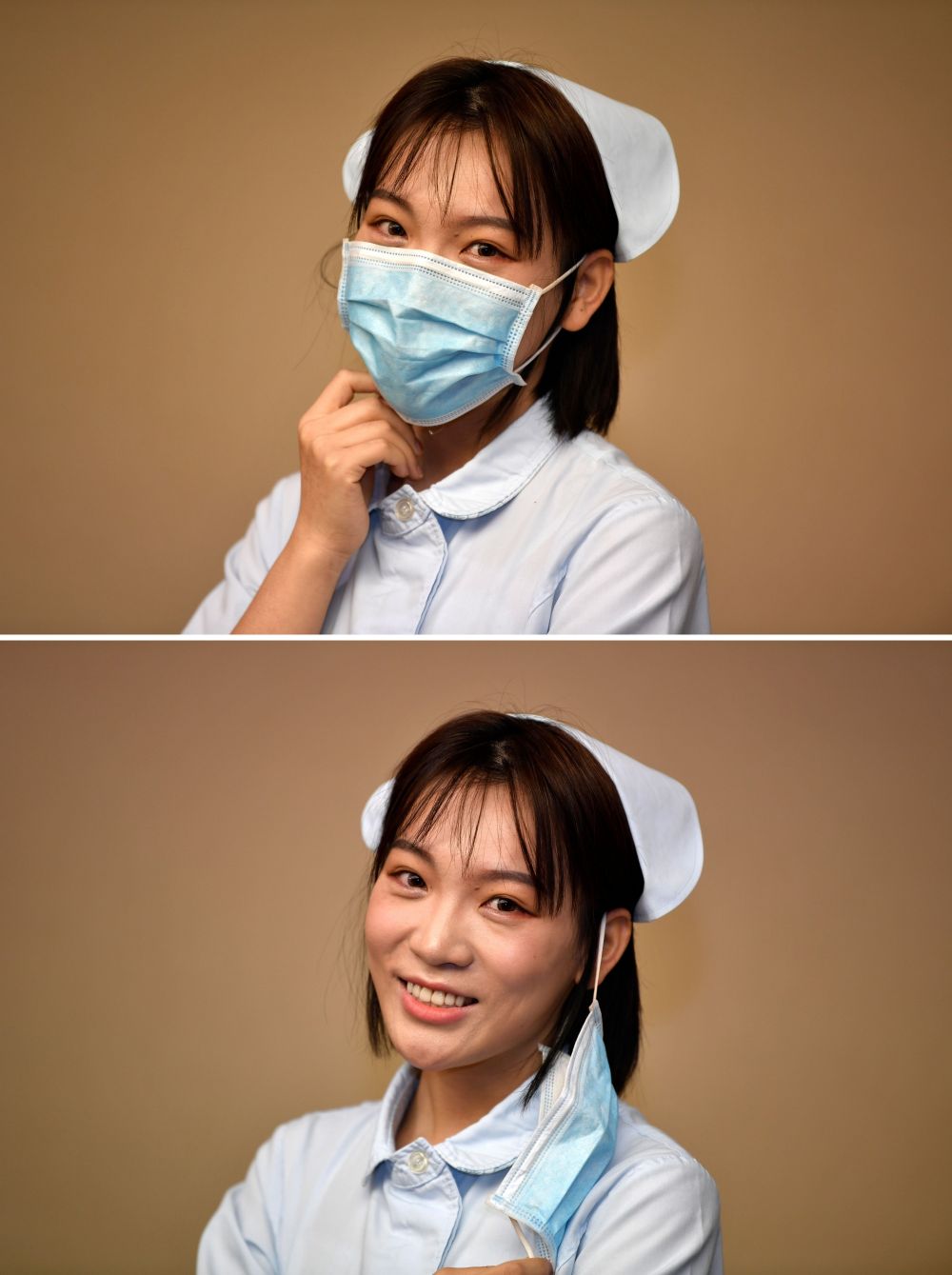 一身護士裝出現(xiàn)在鏡頭前,張碩依然戴著口罩,卻遮擋不住眉宇間散發(fā)出的青春朝氣。