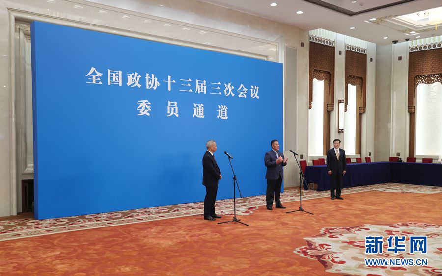 全國政協(xié)十三屆三次會議首場“委員通道”采訪活動于5月21日在人民大會堂新聞發(fā)布廳舉行,邀請部分全國政協(xié)委員通過網絡視頻方式接受媒體采訪。圖為“委員通道”現(xiàn)場。新華網 王翰林 攝