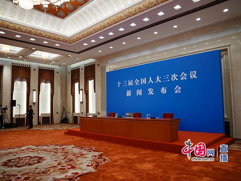 十三屆全國(guó)人大三次會(huì)議新聞發(fā)布會(huì)即將開(kāi)始。中國(guó)網(wǎng) 楊佳 攝