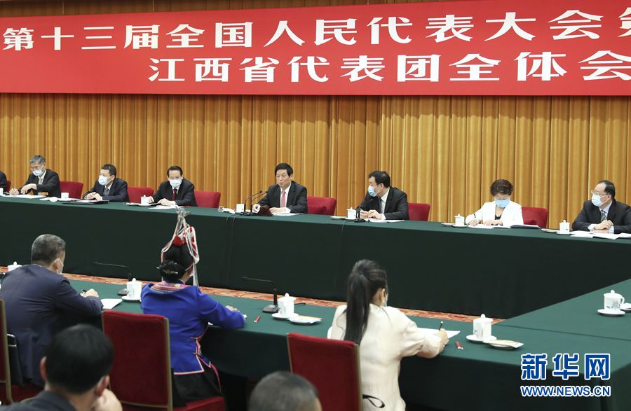5月22日,中共中央政治局常委、全國(guó)人大常委會(huì)委員長(zhǎng)栗戰(zhàn)書參加十三屆全國(guó)人大三次會(huì)議江西代表團(tuán)的審議。 新華社記者 丁林 攝
