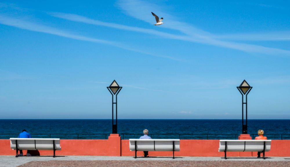 5月21日,在德國(guó)賓茨,人們坐在海邊的長(zhǎng)椅上。歐洲地區(qū)新冠疫情持續(xù)緩解,多國(guó)已重新開放或計(jì)劃開放邊界,為即將到來的夏季旅游旺季創(chuàng)造條件。新華社/法新