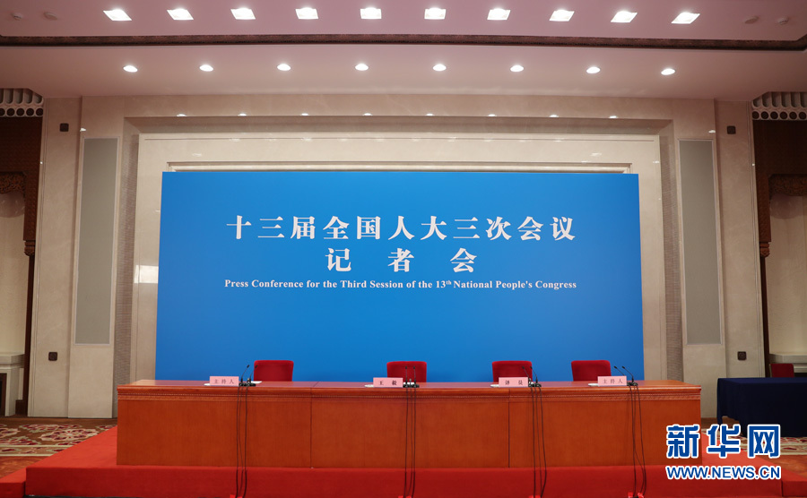 十三屆全國人大三次會議于5月24日(星期日)下午3時(shí)在人民大會堂新聞發(fā)布廳舉行記者會,邀請國務(wù)委員兼外交部長王毅就“中國外交政策和對外關(guān)系”相關(guān)問題回答中外記者提問。為有效防控疫情,共同維護(hù)公共衛(wèi)生與健康,記者會將采用網(wǎng)絡(luò)視頻形式進(jìn)行。新華網(wǎng)現(xiàn)場直播。圖為記者會現(xiàn)場。新華網(wǎng) 翟子赫 攝
