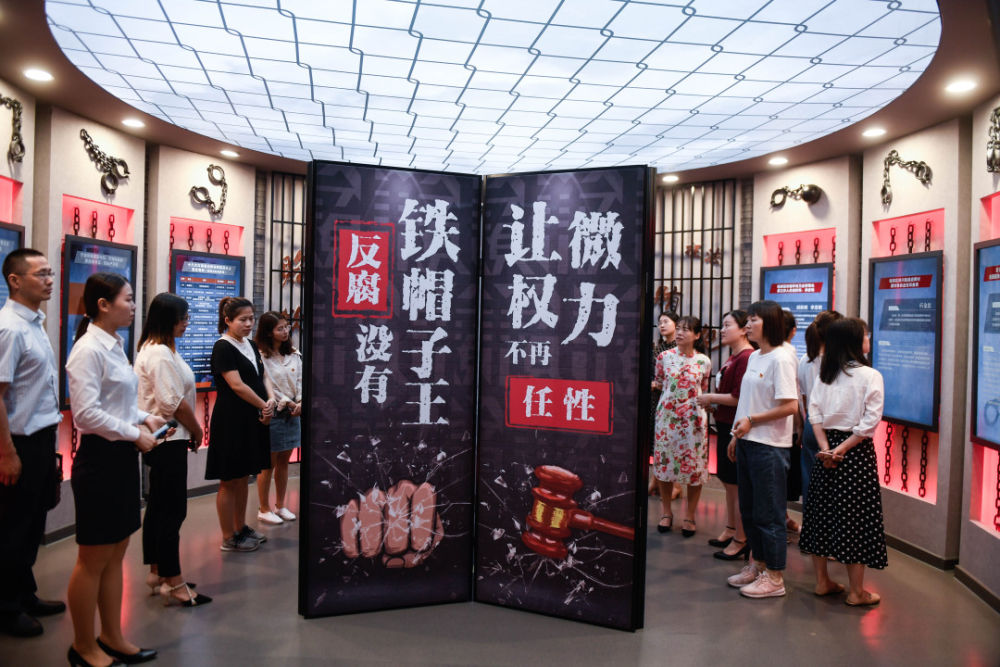 公職人員在浙江寧波長(zhǎng)山清風(fēng)館的“典案醒廉”展廳參觀。(新華社記者黃宗治 攝)