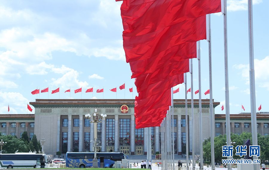 5月27日,中國(guó)人民政治協(xié)商會(huì)議第十三屆全國(guó)委員會(huì)第三次會(huì)議在北京人民大會(huì)堂舉行閉幕會(huì)。這是天安門(mén)廣場(chǎng)上紅旗飄揚(yáng)。 新華網(wǎng) 翟子赫 攝