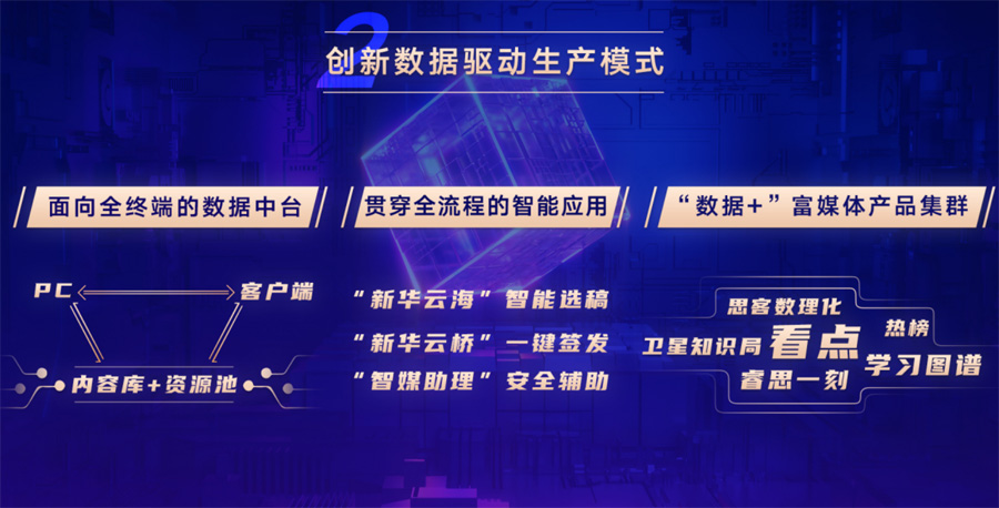 再造升級后的新華網(wǎng)突出“技術(shù)引領(lǐng)”,以“數(shù)據(jù)”為核心生產(chǎn)要素,為內(nèi)容制作、聚合分發(fā)、用戶運(yùn)營等提供全流程支撐,實(shí)現(xiàn)生產(chǎn)模式“由外而內(nèi)”的變革。