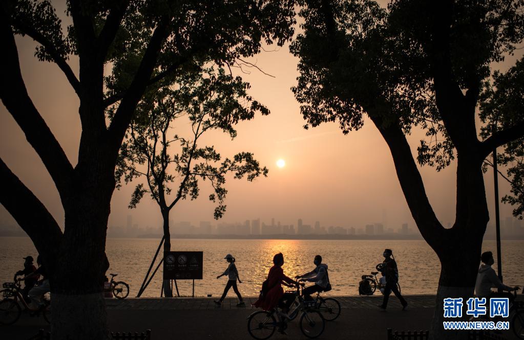 2020年5月5日,游客在武漢東湖綠道游玩。新華社記者 肖藝九 攝