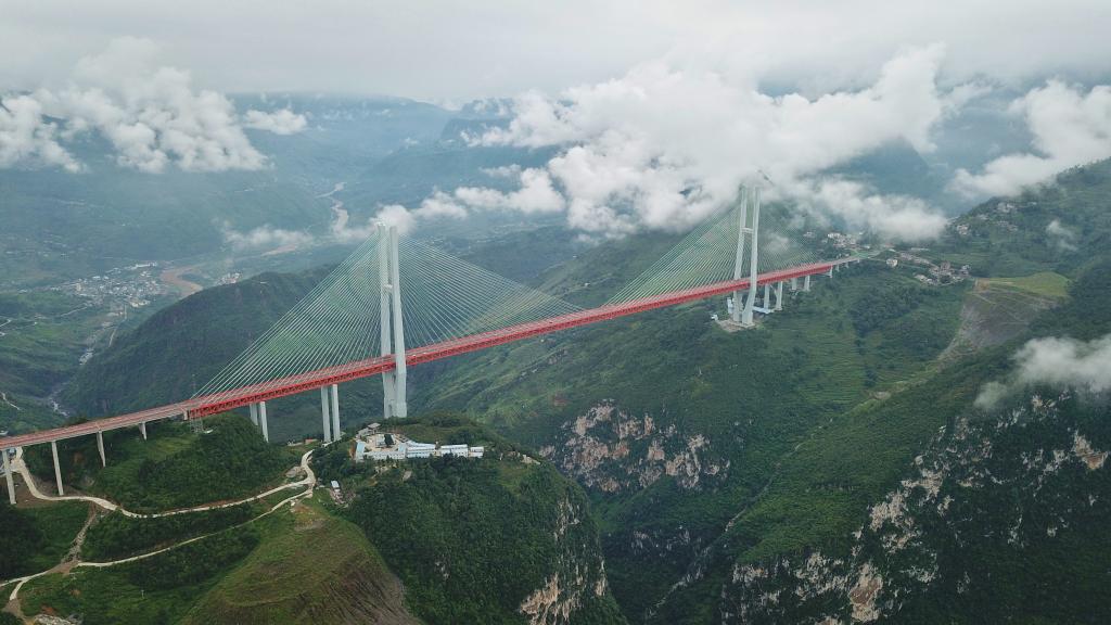 無(wú)人機(jī)航拍的北盤江大橋(2018年8月9日攝)。新華社記者歐東衢攝