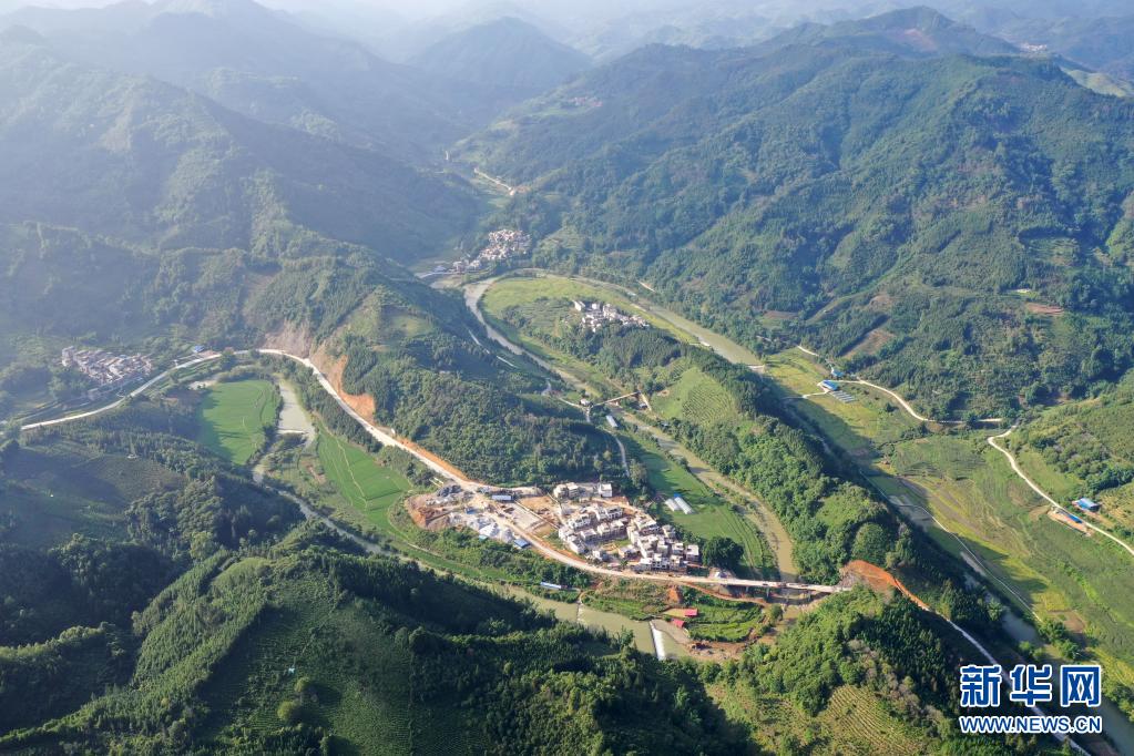 這是廣西資源縣“資水丹霞”田園綜合體內(nèi)的田園景觀(4月29日攝,無人機照片)。新華社記者 陸波岸 攝