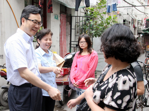 鄒碧華(左一)生前在社區(qū)走訪。(資料照片)