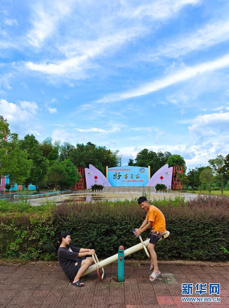 年輕人在江西省上饒市橫峰縣百家村的好客王家自然村玩耍(7月24日攝,手機(jī)照片)。新華社記者 邢廣利 攝