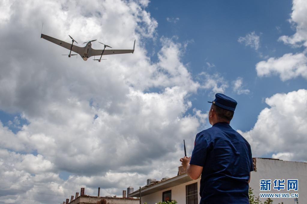 6月1日,工作人員使用無人機(jī)監(jiān)測(cè)象群行蹤。新華社記者 胡超 攝