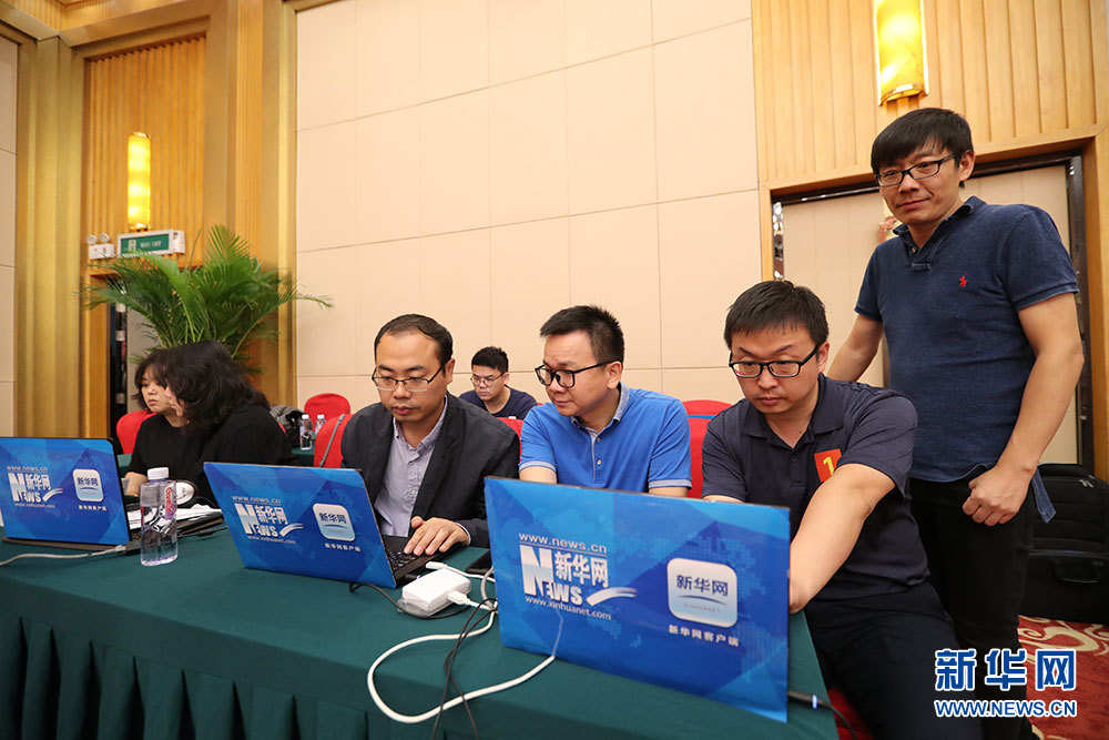 ??? 9月24日,慶祝中華人民共和國成立70周年活動新聞中心在北京梅地亞中心二層新聞發(fā)布廳舉辦第一場新聞發(fā)布會。圖為新華網(wǎng)對新聞發(fā)布會進(jìn)行網(wǎng)絡(luò)直播。新華網(wǎng)記者 陳競超 攝