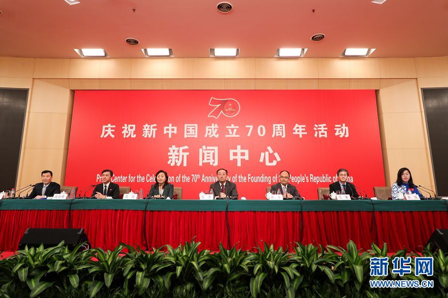 9月25日,慶祝中華人民共和國成立70周年活動(dòng)新聞中心在北京梅地亞中心二層新聞發(fā)布廳舉辦第二場(chǎng)專題集體采訪活動(dòng)。圖為新聞發(fā)布會(huì)現(xiàn)場(chǎng)。新華網(wǎng)記者 焦鵬 攝