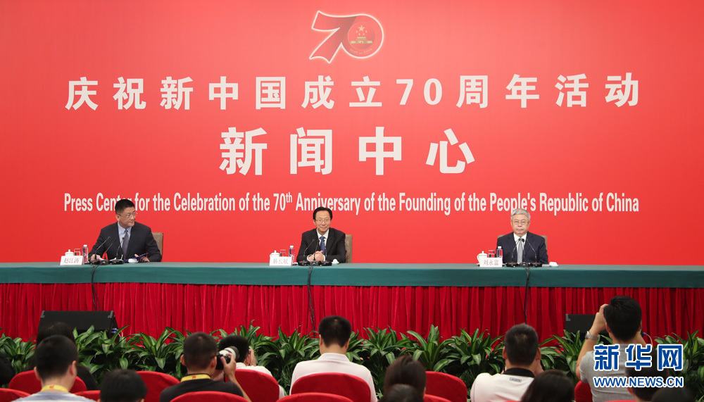 9月27日,慶祝中華人民共和國(guó)成立70周年活動(dòng)新聞中心在梅地亞中心二層新聞發(fā)布廳舉辦第三場(chǎng)新聞發(fā)布會(huì),中央農(nóng)村工作領(lǐng)導(dǎo)小組辦公室主任、農(nóng)業(yè)農(nóng)村部部長(zhǎng)韓長(zhǎng)賦,國(guó)務(wù)院扶貧開發(fā)領(lǐng)導(dǎo)小組辦公室主任劉永富介紹全面建成小康社會(huì),扎實(shí)推進(jìn)脫貧攻堅(jiān)和鄉(xiāng)村振興,并回答記者提問。圖為發(fā)布會(huì)現(xiàn)場(chǎng)。新華網(wǎng) 陳杰 攝