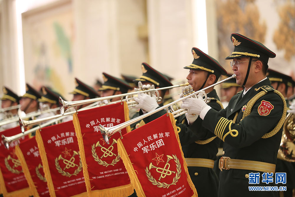 ??? 9月29日上午10時(shí),中華人民共和國(guó)國(guó)家勛章和國(guó)家榮譽(yù)稱號(hào)頒授儀式在人民大會(huì)堂隆重舉行。圖為頒授儀式現(xiàn)場(chǎng)的中國(guó)人民解放軍軍樂團(tuán)。新華網(wǎng) 陳杰 攝