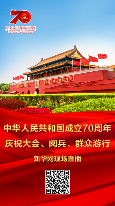 新華社北京9月29日電 10月1日上午,慶祝中華人民共和國成立70周年大會將在北京天安門廣場隆重舉行。屆時,中共中央總書記、國家主席、中央軍委主席習近平將發(fā)表重要講話,隨后舉行盛大的閱兵式和群眾游行。廣播電臺、電視臺、新聞網站將現場直播國慶慶祝大會、閱兵式和群眾游行。