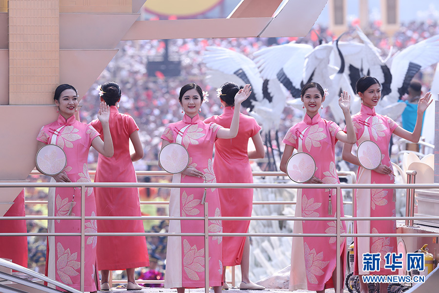 “此次群眾游行方陣?yán)镏袊?guó)文化元素的服裝集中亮相,展示了國(guó)人越來(lái)越自信的風(fēng)貌與氣質(zhì)。”北京服裝學(xué)院服裝藝術(shù)與工程學(xué)院教授鄒游說(shuō)。