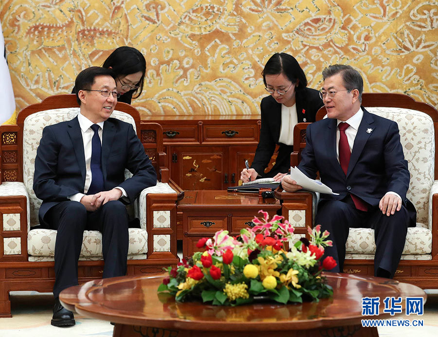 韓正轉(zhuǎn)達(dá)了習(xí)近平主席對(duì)文在寅總統(tǒng)的問候,預(yù)祝平昌冬季奧運(yùn)會(huì)圓滿成功。韓正表示,中韓兩國(guó)地理相鄰,是天然的合作伙伴。自1992年建交以來(lái),兩國(guó)關(guān)系實(shí)現(xiàn)全方位發(fā)展。去年12月,總統(tǒng)先生對(duì)中國(guó)進(jìn)行了成功的國(guó)事訪問。今年伊始,習(xí)近平主席同你通了電話。兩國(guó)元首就發(fā)展中韓關(guān)系、加強(qiáng)在重大地區(qū)國(guó)際問題上的協(xié)調(diào)達(dá)成重要共識(shí)。中方愿同韓方一道,沿著兩國(guó)元首共識(shí)指明的方向,堅(jiān)持相互尊重和支持,全面開展各層級(jí)溝通與對(duì)話,進(jìn)一步活躍交流與合作,妥善處理好敏感問題,增進(jìn)相互理解與信任,共同推動(dòng)中韓關(guān)系不斷向前發(fā)展。