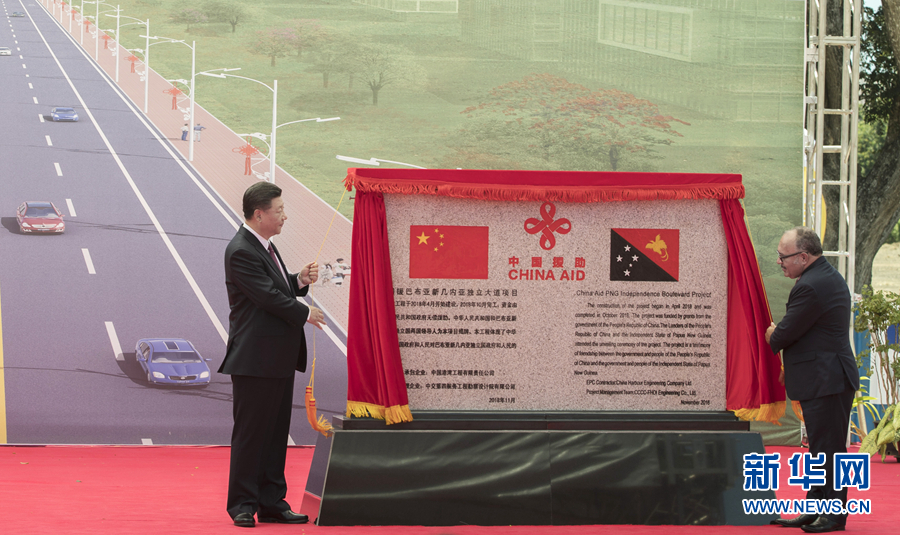 習(xí)近平和巴布亞新幾內(nèi)亞總理奧尼爾共同出席中國援建的獨立大道移交啟用儀式
