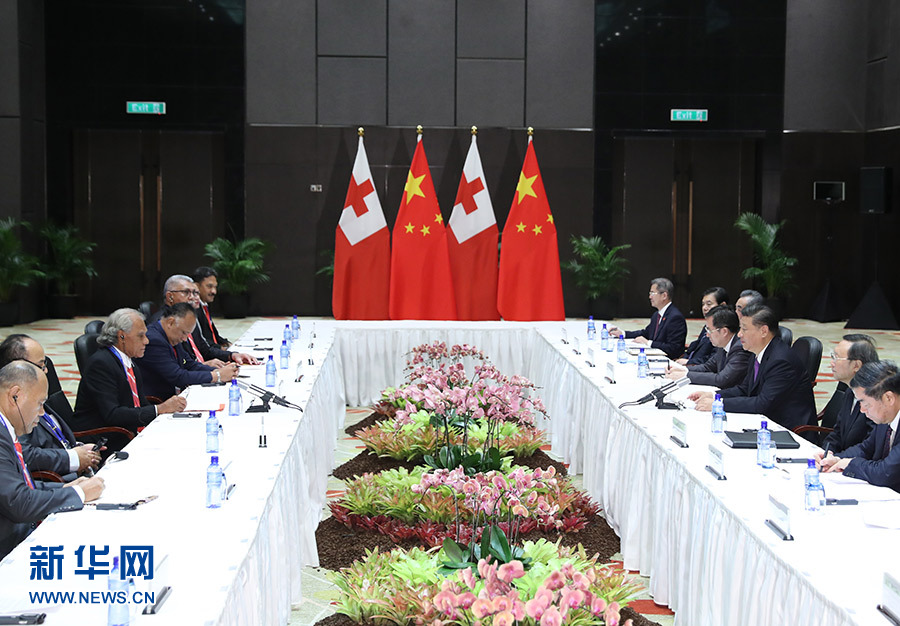11月16日,國(guó)家主席習(xí)近平在莫爾茲比港分別會(huì)見建交太平洋島國(guó)領(lǐng)導(dǎo)人。這是習(xí)近平會(huì)見湯加首相波希瓦。 新華社記者 丁林 攝