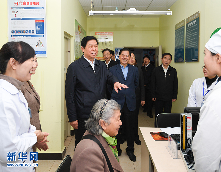 11月28日至12月1日,中共中央政治局常委、全國人大常委會委員長栗戰(zhàn)書在云南就制定基本醫(yī)療衛(wèi)生與健康促進法開展立法調(diào)研。這是11月29日,栗戰(zhàn)書在昆明市西山區(qū)前衛(wèi)社區(qū)衛(wèi)生服務(wù)中心,與醫(yī)務(wù)人員和就診患者親切交談。 新華社記者 申宏 攝