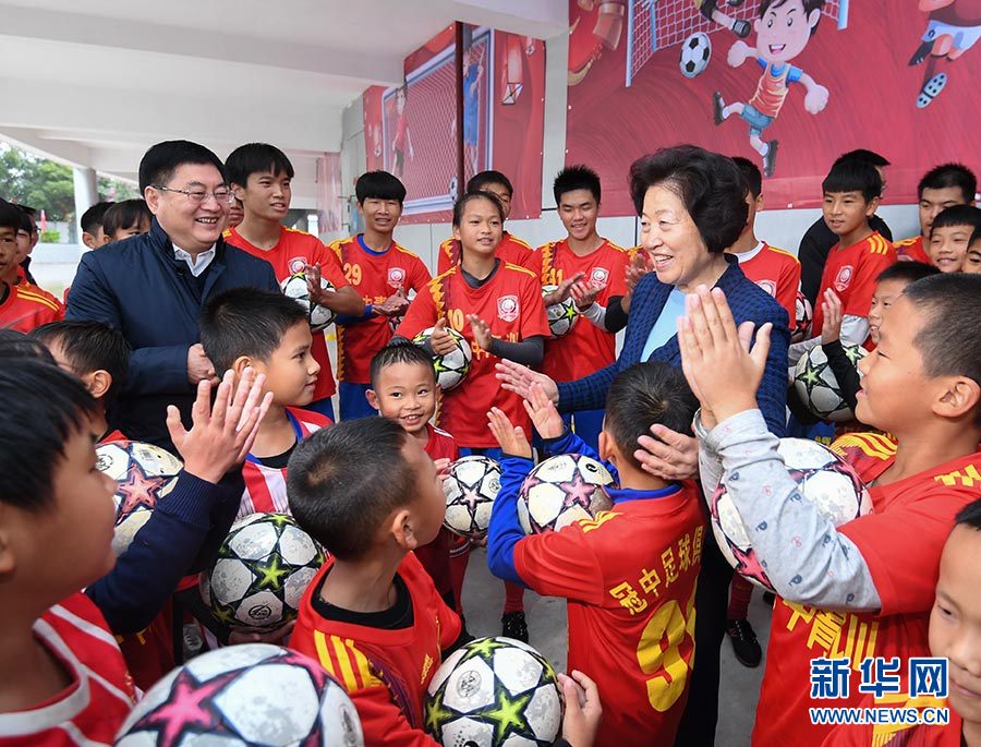 12月11日,中共中央政治局委員、國務院副總理、中央代表團副團長孫春蘭率中央代表團二分團,帶著以習近平同志為核心的黨中央的親切關懷和全國人民的美好祝福,赴防城港看望慰問各族各界干部群眾,共同慶祝廣西壯族自治區(qū)成立60周年。這是孫春蘭在東興市足球訓練基地與青少年足球運動員交流。 新華社記者 申宏 攝