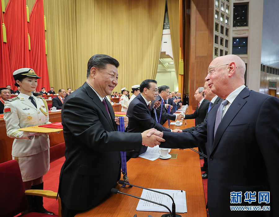 12月18日,慶祝改革開放40周年大會在北京人民大會堂隆重舉行。中共中央總書記、國家主席、中央軍委主席習(xí)近平在大會上發(fā)表重要講話。這是習(xí)近平等為獲得中國改革友誼獎?wù)氯藛T代表頒獎。 新華社記者 鞠鵬 攝