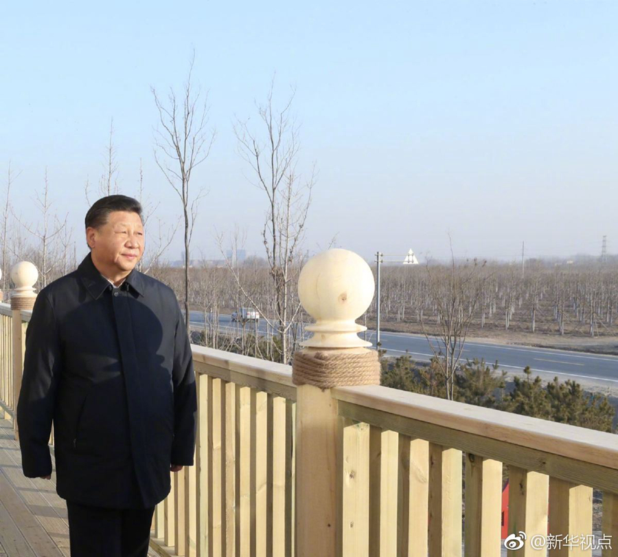 雄安新區(qū)堅(jiān)持生態(tài)優(yōu)先、綠色發(fā)展,率先啟動(dòng)生態(tài)基礎(chǔ)設(shè)施建設(shè)和環(huán)境整治,目前已完成11萬(wàn)畝“千年秀林”建設(shè)。16日下午,習(xí)近平總書記來到“千年秀林”大清河片林一區(qū)造林區(qū)域,乘車穿行林區(qū)察看林木長(zhǎng)勢(shì),登上秀林驛站二層平臺(tái)遠(yuǎn)眺林區(qū)全貌,同當(dāng)?shù)刈o(hù)林員代表親切交流。他說,藍(lán)天、碧水、綠樹,藍(lán)綠交織,將來生活的最高標(biāo)準(zhǔn)就是生態(tài)好。雄安新區(qū)過去有一定的基礎(chǔ),現(xiàn)在搞“千年秀林”,將來這里一定是最宜居的地方。綠水青山就是金山銀山,雄安新區(qū)就要靠這樣的生態(tài)環(huán)境來體現(xiàn)價(jià)值、增加吸引力。(記者張曉松、謝環(huán)馳、鞠鵬)?