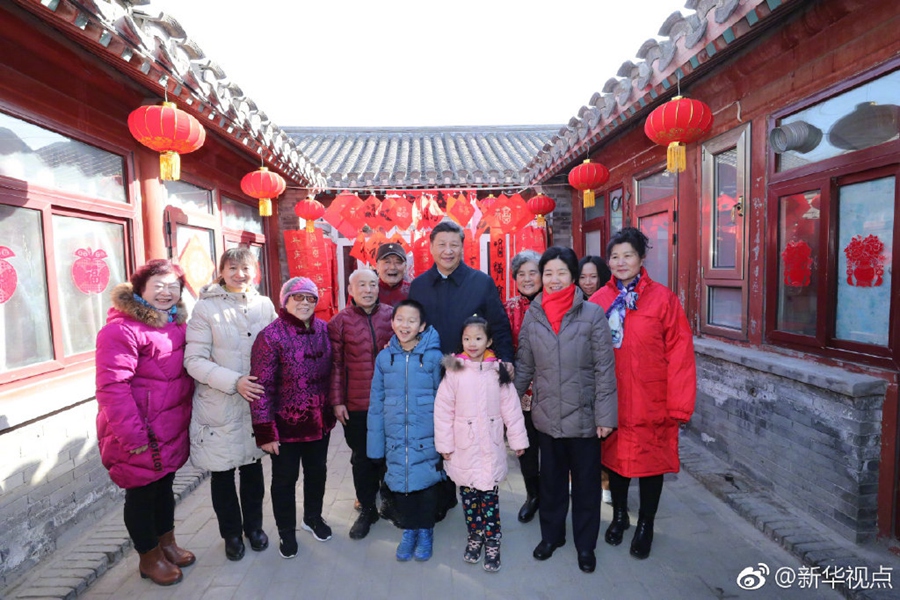2月1日上午,習(xí)近平來到前門東區(qū),沿草廠四條胡同步行察看街巷風(fēng)貌,聽取區(qū)域規(guī)劃建設(shè)、舊城保護整治、人居環(huán)境改善等情況介紹,先后走進兩個四合院看望,同這里的居民一起包餃子、炸饹馇、貼“?!弊帧⒘募页?,仔細(xì)詢問住房環(huán)境有沒有改善、年貨備齊沒有、生活還有什么困難,祝他們生活幸福、新春快樂。四合院里笑語歡聲,習(xí)近平對他們說,中國共產(chǎn)黨的追求就是讓老百姓生活越來越好。(記者張曉松、鞠鵬)
