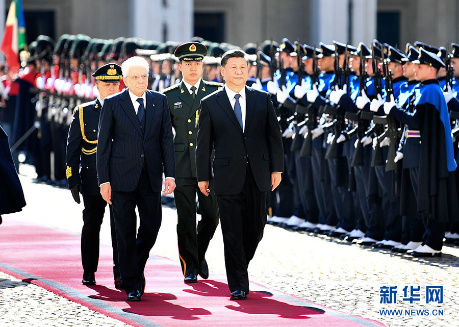 3月22日,國家主席習(xí)近平在羅馬同意大利總統(tǒng)馬塔雷拉舉行會談。會談前,馬塔雷拉總統(tǒng)為習(xí)近平舉行隆重歡迎儀式。 新華社記者 謝環(huán)馳 攝