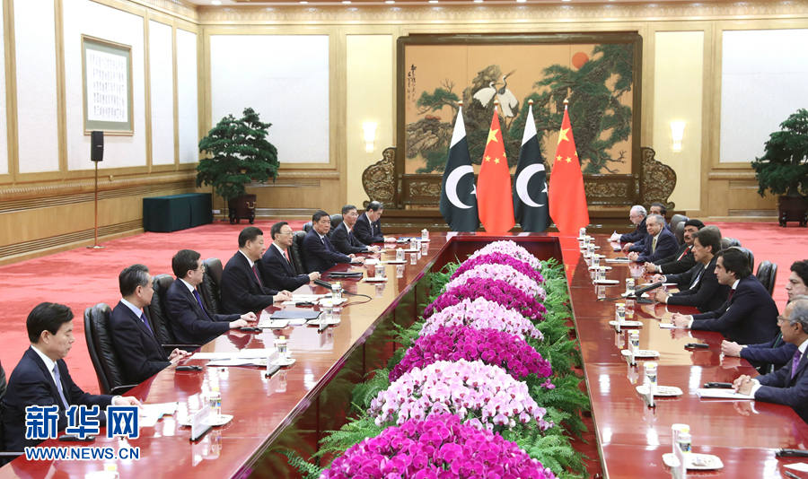 4月28日,國家主席習(xí)近平在北京人民大會(huì)堂會(huì)見巴基斯坦總理伊姆蘭·汗。 新華社記者 姚大偉 攝