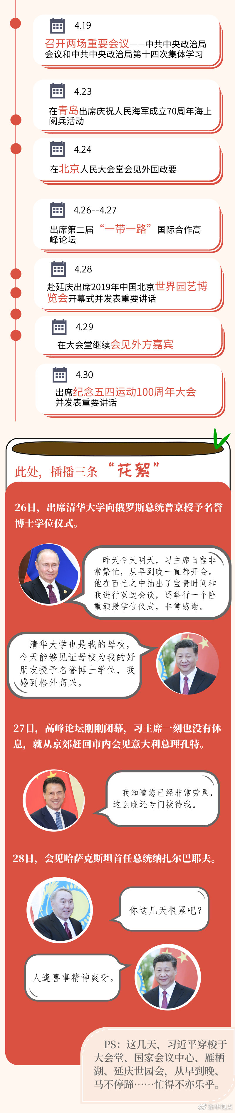 4月,一組數(shù)據(jù)淋漓盡致展現(xiàn)了習(xí)近平的“忙碌”: