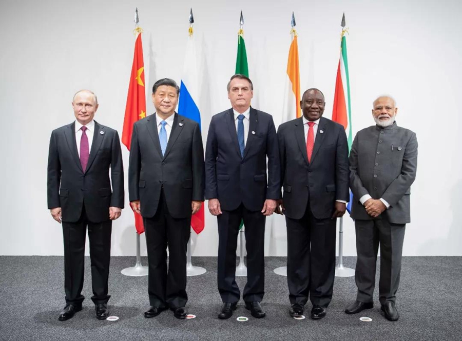 ↑金磚國家領(lǐng)導(dǎo)人會(huì)晤6月28日在大阪舉行。與會(huì)領(lǐng)導(dǎo)人圍繞金磚伙伴關(guān)系、全球治理、科技創(chuàng)新合作等深入交換意見,凝聚共識。新華社記者李濤攝