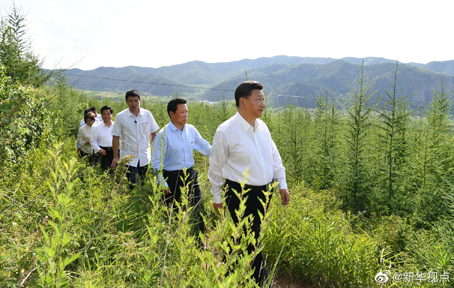 15日下午,習(xí)近平總書(shū)記來(lái)到內(nèi)蒙古赤峰市喀喇沁旗馬鞍山林場(chǎng)考察。沿著崎嶇的護(hù)林小道,習(xí)近平步行進(jìn)入林區(qū)察看林木長(zhǎng)勢(shì),同正在作業(yè)的護(hù)林員們親切交談,了解林場(chǎng)建設(shè)發(fā)展情況。大家告訴總書(shū)記,現(xiàn)在生態(tài)好了,在上山巡護(hù)的時(shí)候,時(shí)常碰到狍子、野兔、山雞、野豬等野生動(dòng)物,來(lái)旅游的人也多了,山野菜不愁賣了,山貨也特別多,老百姓切切實(shí)實(shí)得到了好處,更加深刻地認(rèn)識(shí)到綠水青山就是金山銀山。習(xí)近平對(duì)大家說(shuō):“護(hù)林員很重要,種樹(shù)多不容易啊!建設(shè)祖國(guó)北方和首都生態(tài)安全屏障是戰(zhàn)略性的任務(wù),是我們要世世代代做下去的事情?!?/p>