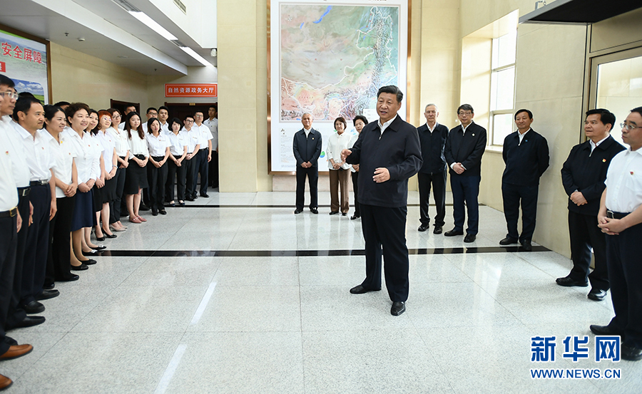 7月15日至16日,中共中央總書記、國家主席、中央軍委主席習近平在內(nèi)蒙古考察并指導開展“不忘初心、牢記使命”主題教育。這是16日,習近平在內(nèi)蒙古自治區(qū)自然資源廳調(diào)研指導開展“不忘初心、牢記使命”主題教育。 新華社記者 謝環(huán)馳 攝