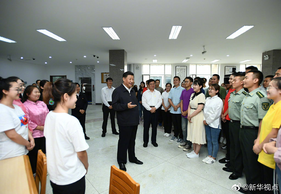 16日上午,正在內(nèi)蒙古考察調(diào)研的習(xí)近平總書記來到內(nèi)蒙古大學(xué),走進(jìn)圖書館同學(xué)生們親切交談。習(xí)近平指出,少年強(qiáng)則中國強(qiáng)??吹侥昵嗳私】德斆?、奮發(fā)向上,充滿正能量,心里十分高興。長江后浪推前浪,青出于藍(lán)而勝于藍(lán),未來是屬于年青人的。在中華民族偉大復(fù)興的進(jìn)程中,你們生逢其時(shí),何其幸也。再過30年,到本世紀(jì)中葉實(shí)現(xiàn)第二個(gè)百年奮斗目標(biāo)的時(shí)候,你們正好是國家的骨干和棟梁。大家要志存高遠(yuǎn)、腳踏實(shí)地,學(xué)好知識,打好基礎(chǔ),增長才干,將來為中華民族偉大復(fù)興貢獻(xiàn)自己的智慧和力量。 (文字:張曉松、朱基釵 攝影:謝環(huán)馳、李學(xué)仁)