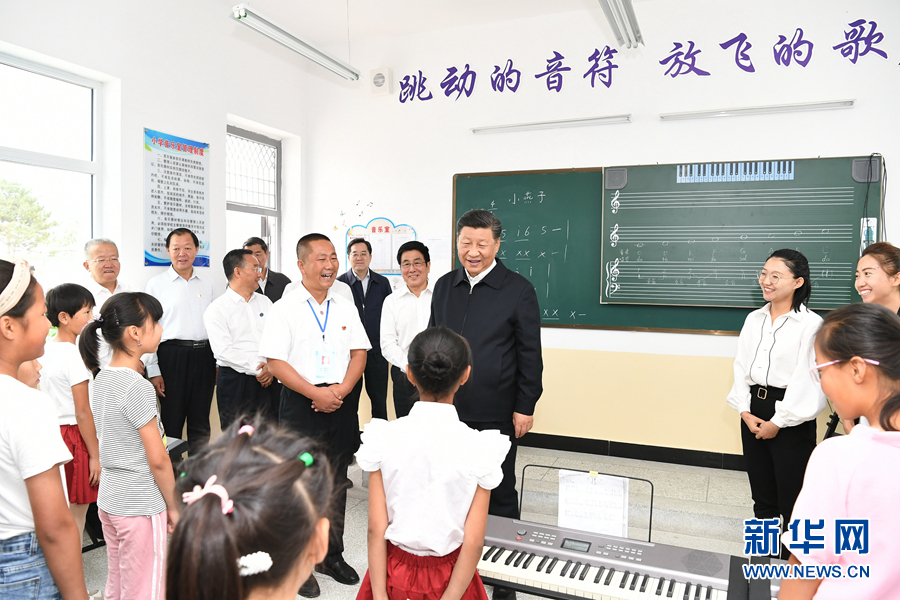 8月19日至22日,中共中央總書記、國家主席、中央軍委主席習(xí)近平在甘肅考察。這是21日上午,習(xí)近平在武威市古浪縣黃花灘生態(tài)移民區(qū)富民新村富民小學(xué)的音樂教室,認(rèn)真觀看正在進行的音樂課教學(xué)。 新華社記者 謝環(huán)馳 攝