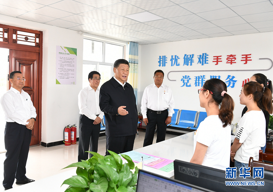 8月19日至22日,中共中央總書記、國家主席、中央軍委主席習(xí)近平在甘肅考察。這是21日上午,習(xí)近平在武威市古浪縣黃花灘生態(tài)移民區(qū)富民新村黨群服務(wù)中心考察。 新華社記者 謝環(huán)馳 攝