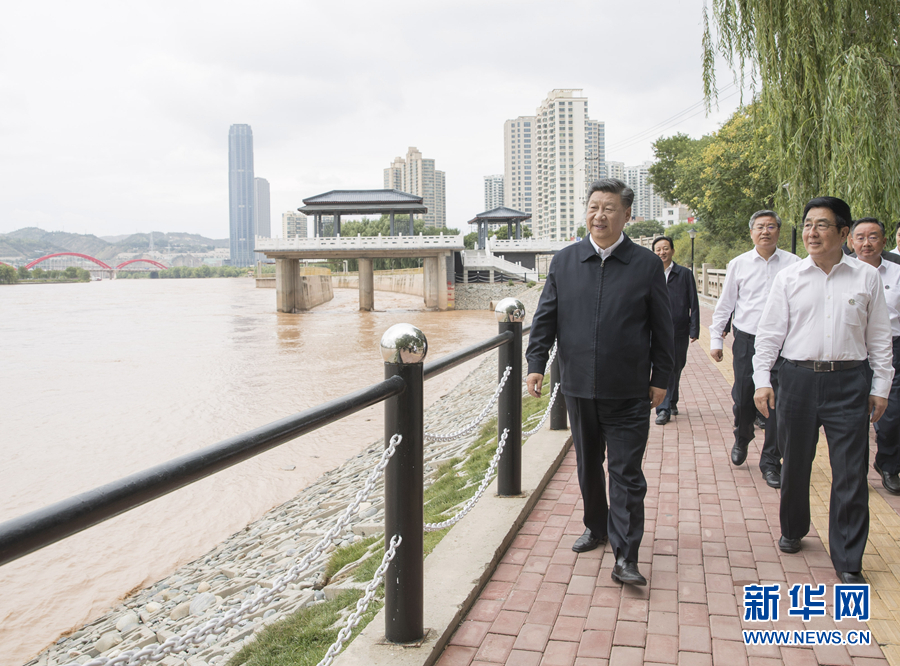 8月19日至22日,中共中央總書記、國家主席、中央軍委主席習(xí)近平在甘肅考察。這是21日下午,習(xí)近平在蘭州市黃河治理蘭鐵泵站項目點,沿步道察看黃河兩岸生態(tài)修復(fù)和景觀建設(shè)情況。 新華社記者 王曄 攝